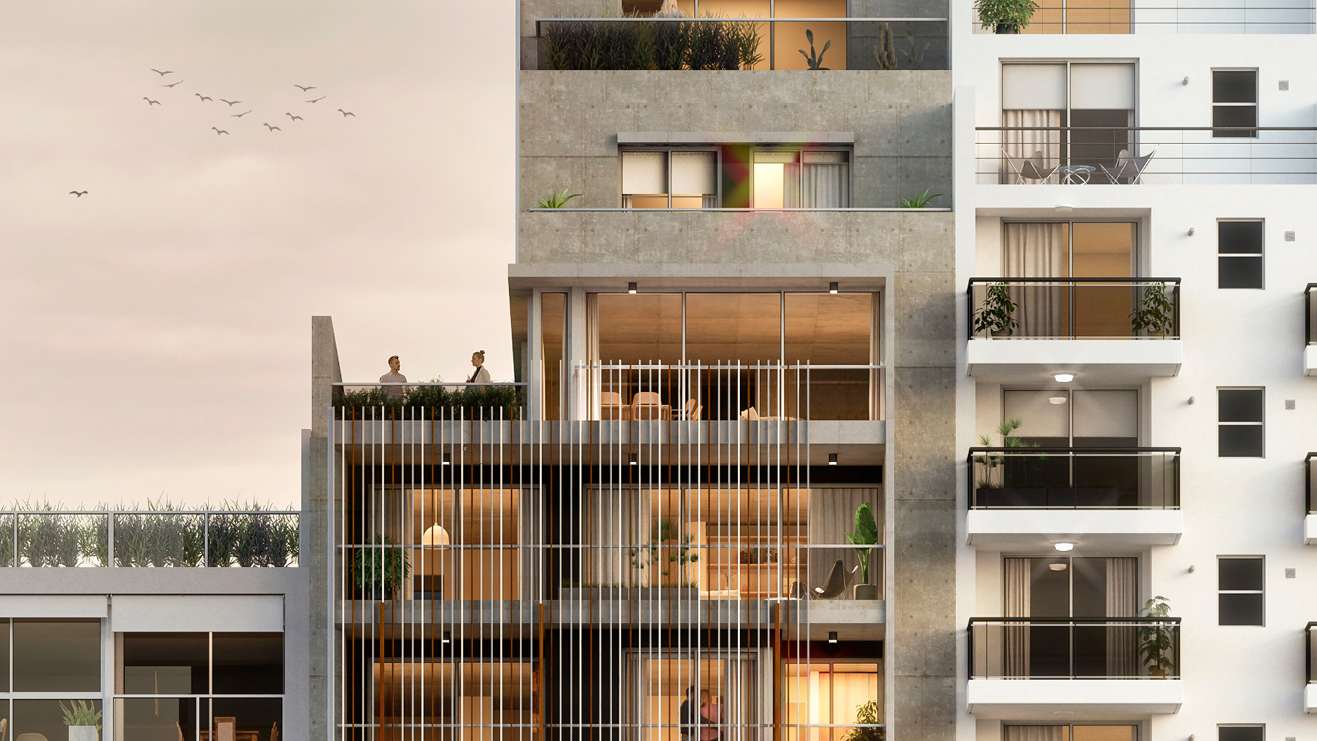 El proyecto, que se destaca por su diseño, su excelente calidad constructiva y sus cuidadas terminaciones, consta de Subsuelo, Planta Baja, Entrepiso y 12 Pisos compuestos por amplios departamentos de 1, 2 y 3 dormitorios, y cocheras en Subsuelo y Entrepiso.
